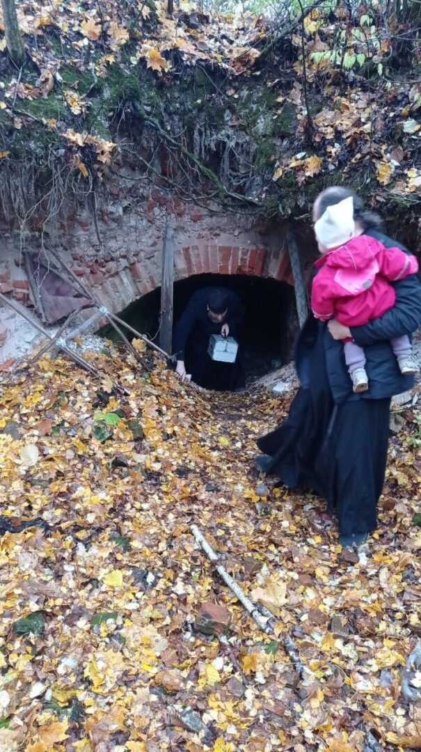 14 октября в день Покрова Пресвятой Богородицы иерей Сергий Гирилович, настоятель Богородицерождественского храма села Тульчино, и иерей Антоний Кабанов, настоятель Благовещенского храма села Липицы, с членами семьи совершили молебен на начало доброго дела в подвальном помещении разрушенного Покровского храма в окрестностях города Пущино и Митинского кладбища