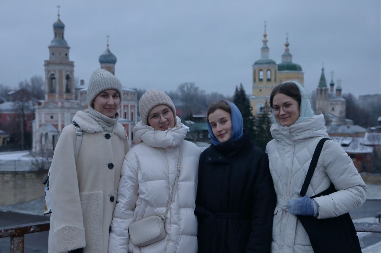 Согревшись душевным теплом прихожан и щедрой трапезой, мы отправились на экскурсию по Серпухову. Мы осмотрели множество храмов, один из которых остался действующим после революции (большая редкость!), увидели остатки стен Серпуховского кремля и… долгожданный снег, который стал приятным дополнением к живым рассказам экскурсовода.