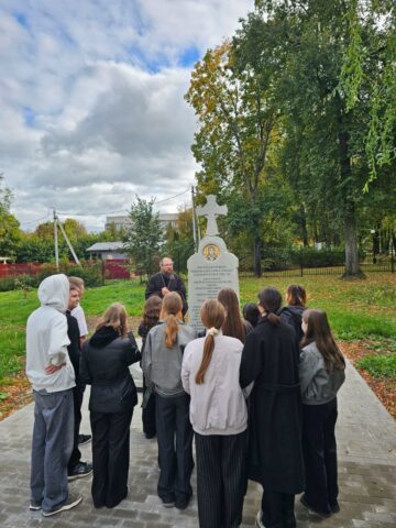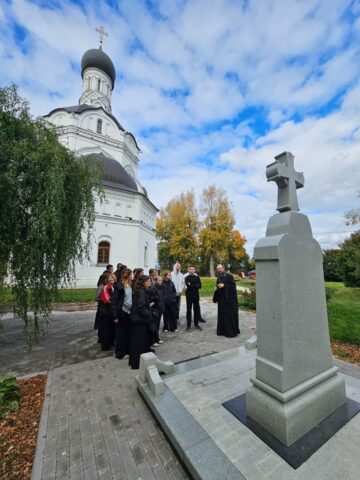 Это была первач встреча в этом учебном году в рамках проекта «Диалог со священником». Настоятель храма провёл экскурсию по территории храма и рассказал о монументе священномученику Илариону (Троицкому) и его родственникам, а также о символике пространства православного храма в рамках затронутой темы.
