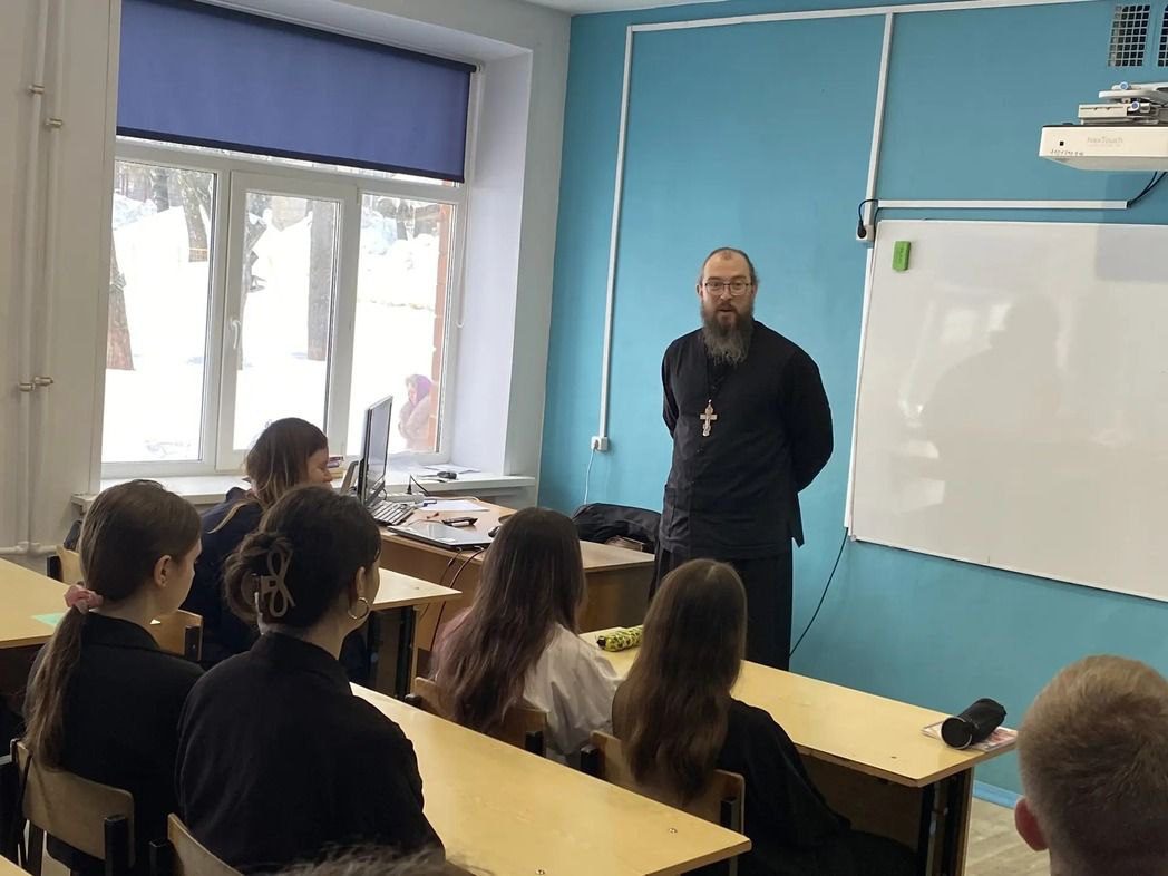 4 марта в Липицкой СОШ состоялась встреча учащихся 10 класса с настоятелем Благовещенского храма села Липицы иереем Антонием Кабановым.