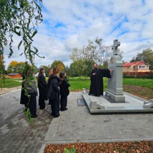 14 октября в день Покрова Пресвятой Богородицы иерей Сергий Гирилович, настоятель Богородицерождественского храма села Тульчино, и иерей Антоний Кабанов, настоятель Благовещенского храма села Липицы, с членами семьи совершили молебен на начало доброго дела в подвальном помещении разрушенного Покровского храма в окрестностях города Пущино и Митинского кладбища