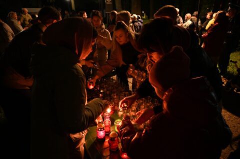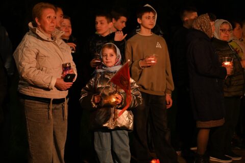 У памятника Летчикам была представлена музыкальная композиция памяти и совершено торжественное поставление горящих лампад и свечей всеми участниками шествия к памятнику.