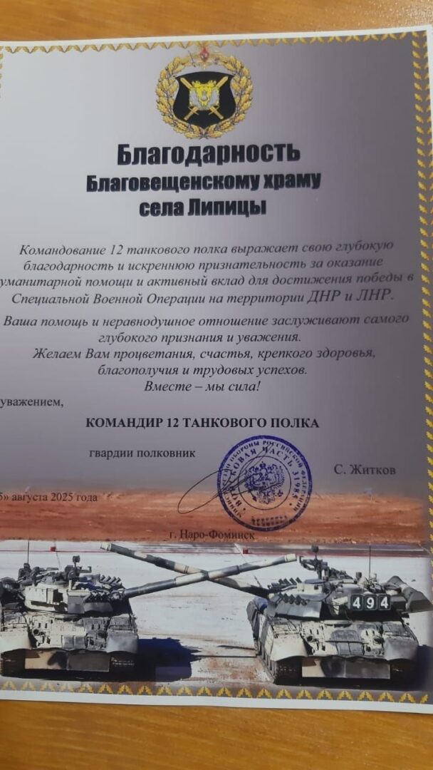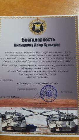 Пришла благодарность от 12 танкового полка.