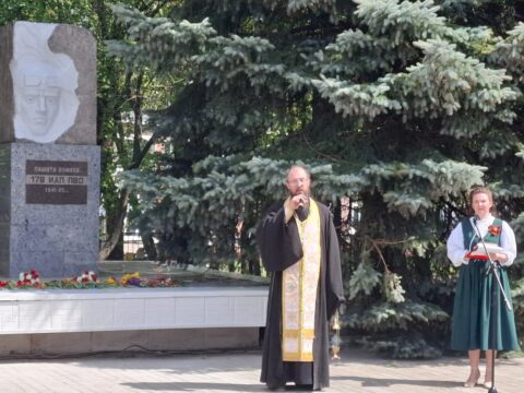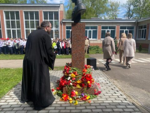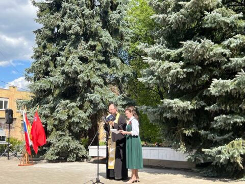 К собравшимся обратился иерей Антоний Кабанов. Он произнес благодарственную молитву о Победе в Великой Отечественной войне, после которой пропели вечную память всем павшим и потрудившимся для Победы людям. Молитва сопровождалась заупокойным звоном с колокольни сельского Благовещенского храма.